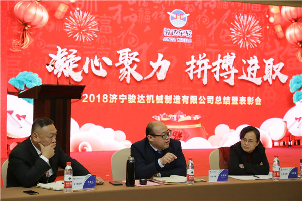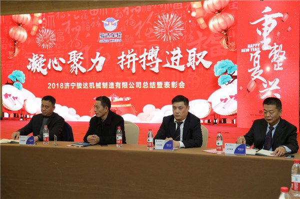 2019年1月25日,濟(jì)寧駿達(dá)機(jī)械制造有限公司2018年度總結(jié)暨表彰會(huì)在圣都國際酒店隆重召開,公司領(lǐng)導(dǎo)班子,生產(chǎn)班長、段長、主管及以上管理人員、全體在職黨員、受表彰的先進(jìn)個(gè)人共計(jì)100余人參加了會(huì)議。