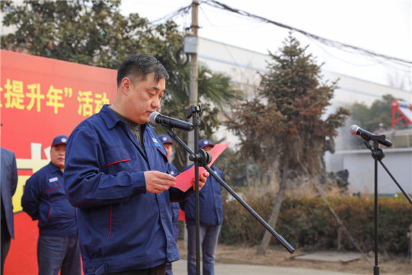 2019年2月28日上午9:00,公司在生產(chǎn)廠區(qū)召開2019“質(zhì)量提升年”活動啟動儀式。公司執(zhí)行董事、總經(jīng)理苗翠波,黨委書記、副總經(jīng)理張鐵巖,常務(wù)副總經(jīng)理遲建軍及全體員工參加了啟動儀式。儀式由黨委書記、副總經(jīng)理張鐵巖主持。