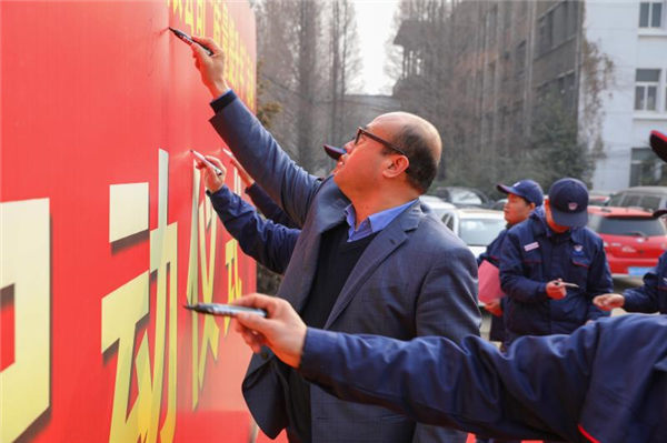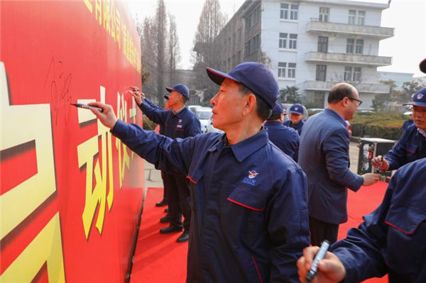 儀式最后,公司領(lǐng)導(dǎo)帶領(lǐng)全體員工共同簽名,留下各自莊重的承諾。