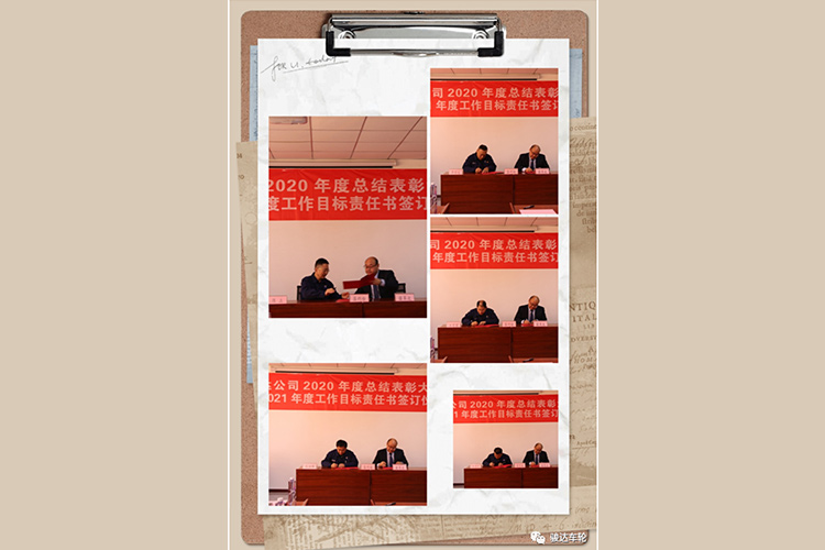 公司總經(jīng)理苗翠波分別與山東駿馳機械科技有限公司總經(jīng)理陳立、銷售管理中心總監(jiān)李繼文、技術(shù)研發(fā)中心總監(jiān)王汝峰、生產(chǎn)管理中心總監(jiān)汪有國、行政管理中心總監(jiān)張德彥分別簽訂2021年度工作目標責任書。